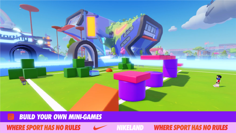 Lo spazio digitale, chiamato Nikeland, consente ai giocatori di vestire il proprio avatar con prodotti Nike, come le Air Force 1 e le Nike Blazer, ed è gratuito per chiunque lo visiti su Roblox. I visitatori possono inoltre giocare a “Tag”, “The Floor Is Lava” e “Dodgeball” sulla piattaforma, venendo ricompensati con nastri blu e medaglie d’oro. I primi possono essere investiti per ottenere materiali utili per costruire aree e giochi, e le seconde per sbloccare prodotti virtuali per gli avatar.
