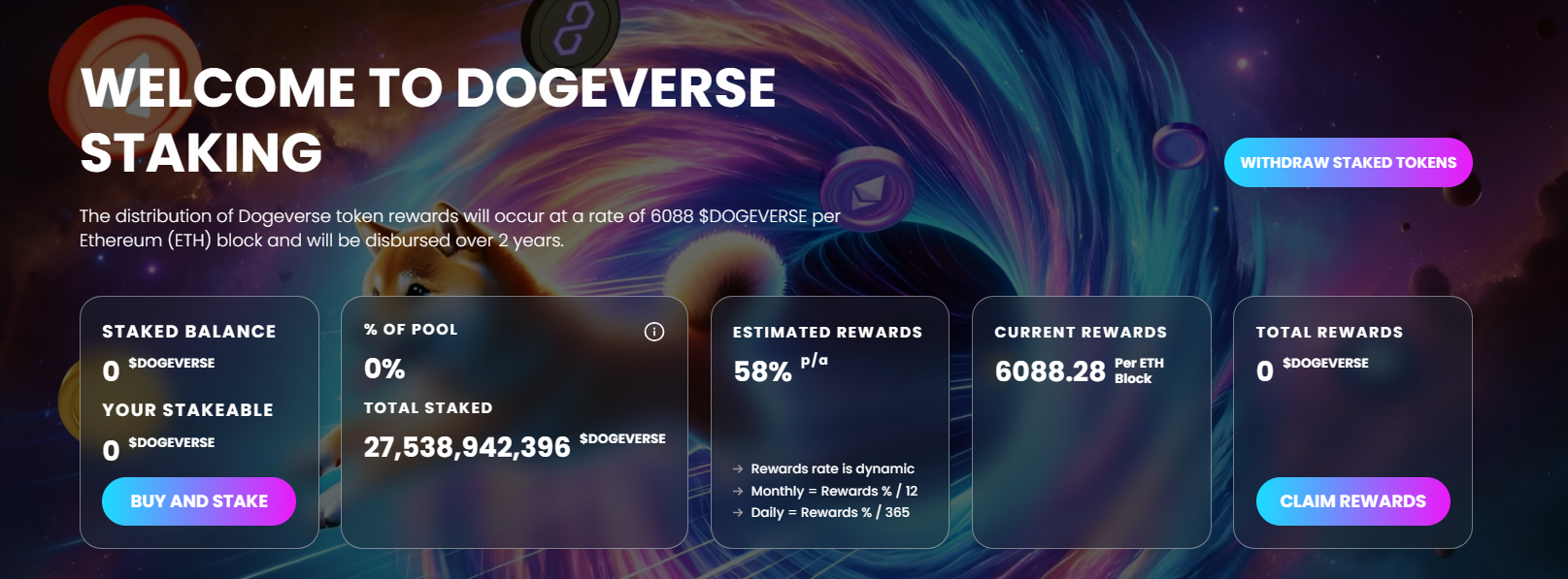 Gli investitori possono mettere in staking $DOGEVERSE per accedere ad un rendimento impressionante