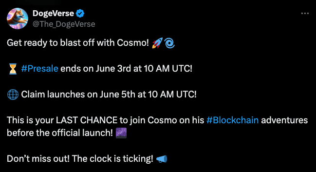 Ciò significa che è l’ultima possibilità per gli investitori di acquistare token DOGEVERSE al prezzo di $ 0,00031.
