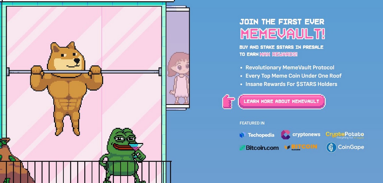 Sul suo sito web compaiono diverse mascotte di meme iconiche e la maggior parte rappresenta token che STARS afferma saranno disponibili il primo giorno del rilascio di MemeVault.
