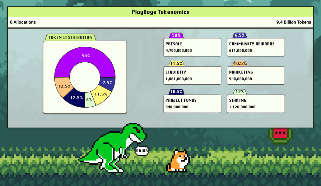 In termini di tokenomics, l’offerta di PlayDoge è limitata a 9,4 miliardi, di cui la metà destinata alla prevendita. Ciò lascia ampio spazio per staking, liquidità, marketing e sviluppo di giochi.