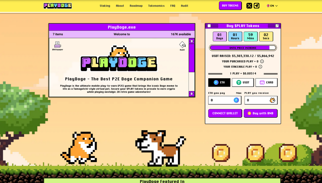 Tuttavia, PlayDoge è una meme coin che sa il fatto suo. È un gioco Play-to-Earn (P2E) ispirato al famoso Tamagotchi degli anni ’90.