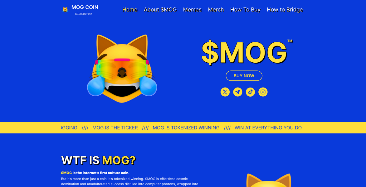La sua capitalizzazione di mercato di 700 milioni di dollari la rende la settima meme coin più grande e la più grande criptovaluta a tema gatto di Ethereum. Il sito web di Mog Coin afferma che l’obiettivo è “essere una forza che definisce la cultura nell’ecosistema crypto”.