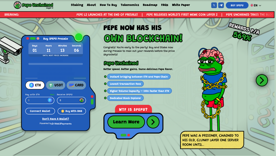 Ma a differenza dei suoi pari, Pepe Unchained sta sfruttando il marchio per fornire una tecnologia rivoluzionaria nel settore. Il team sta costruendo un layer 2 di Ethereum che promette di essere più veloce ed economico della rete principale di Ethereum.