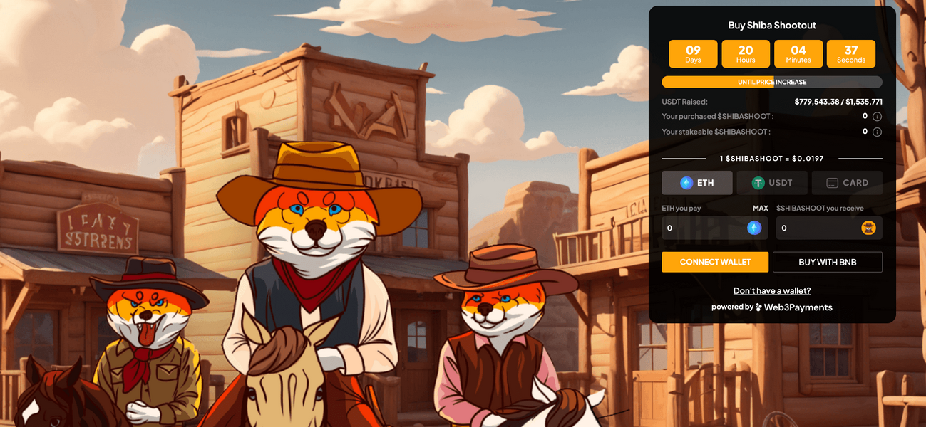 Infine, Shiba Shootout è una nuova meme coin con grandi possibilità di esplodere. Questo progetto è ispirato all’iconica Shiba Inu, ma porta anche utilità senza precedenti e un accattivante tema Wild West.