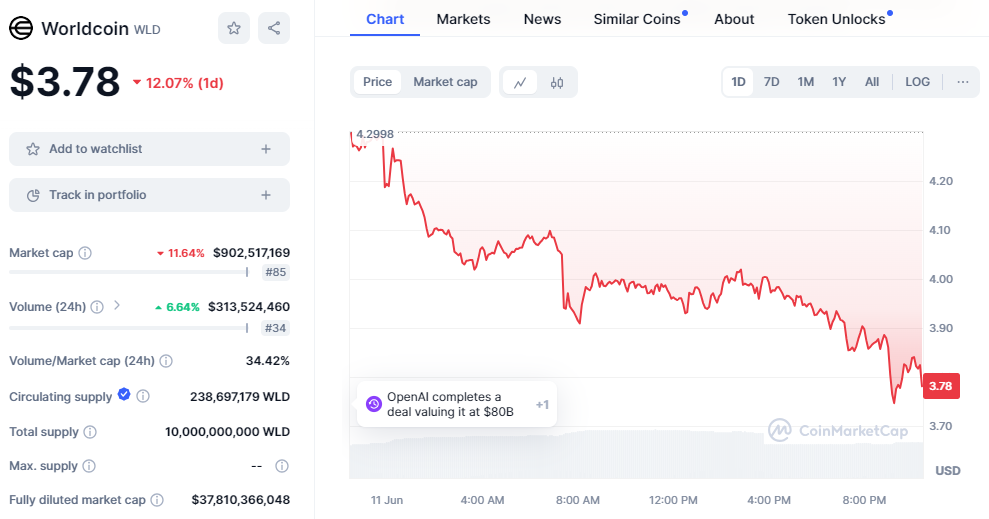 Anche la partnership storica di Apple con OpenAI non è riuscita a rafforzare il settore dell’intelligenza artificiale, con Worldcoin – nata da un’idea del CEO di OpenAI Sam Altman – in calo del 12% nelle ultime 24 ore.
