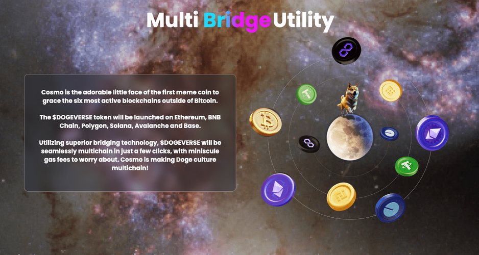 Ispirato dai viaggi di Cosmo, il cane mascotte del progetto, Dogeverse mira a unire le comunità crypto su diverse blockchain attraverso il potere dei meme.