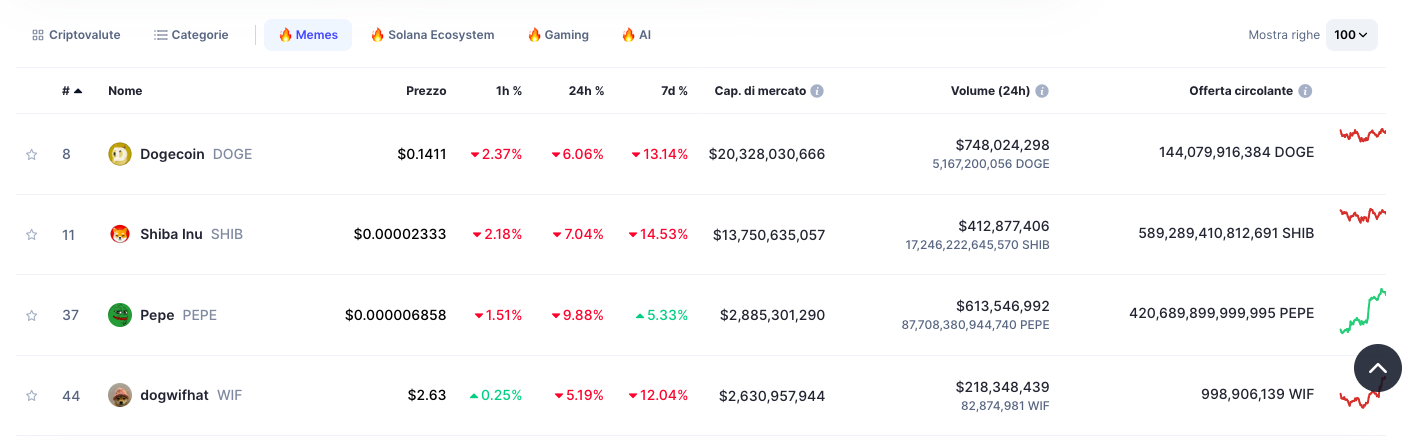 Alcuni dei maggiori risultati negativi di giornata provengono dal settore sempre volatile delle meme coin, con BONK, PEPE e FLOKI in testa alla tendenza avversa.