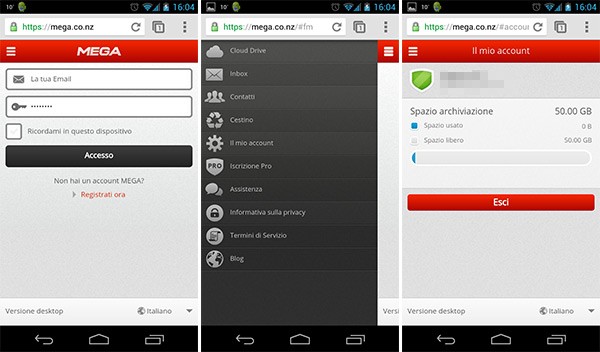 Piccola novità per il progetto di Kim Dotcom, dunque, tornato online all’inizio del 2013 dopo un anno di inattività dovuto alla chiusura di Megaupload, Megavideo e al suo arresto da parte delle autorità. L’imprenditore di origini tedesche ha in cantiere anche Megabox, piattaforma dedicata allo streaming musicale il cui lancio era atteso per i mesi scorsi, ma che ha fatto perdere le proprie tracce. Si ricorda che MEGA offre 50 GB di spazio gratuito per l’upload dei file, da salvare su server cloud per essere condivisi o sincronizzati con qualunque altro dispositivo. Come detto in apertura, il team di sviluppatori è al lavoro per confezionare un’app dedicata al mondo mobile.