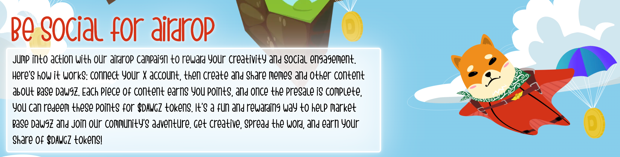 I membri della community sono al centro della strategia di marketing di Base Dawgz, grazie al suo sistema share-to-earn che paga punti premio per la condivisione di contenuti incentrati su $DAWGZ sui social media.