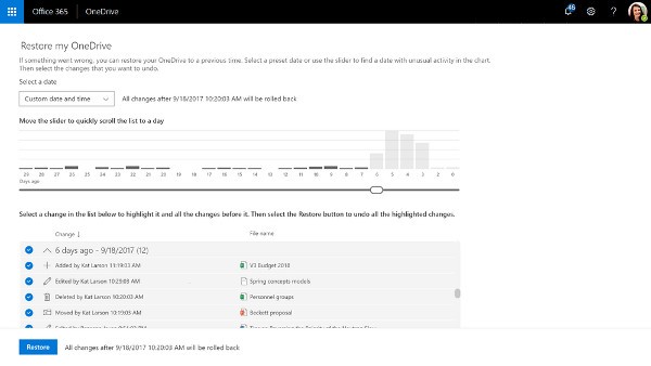 La novità è già stata implementata in OneDrive for Business e gli utenti possono già utilizzarla. Sfruttare “Files Restore" è davvero molto facile. Tutto quello che bisognerà fare è recarsi all’interno delle Impostazioni del servizio cloud e selezionare “Restore OneDrive“. A quel punto agli utenti sarà mostrato una sorta di grafico che evidenzierà le attività dei file negli ultimi 30 giorni. Da questa schermata sarà possibile “tornare indietro" scegliendo il momento esatto negli ultimi 30 giorni. “Files Restore" permette di ripristinare uno o più file, in base alle esigenze.