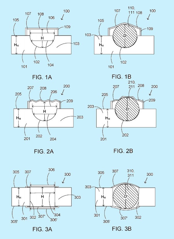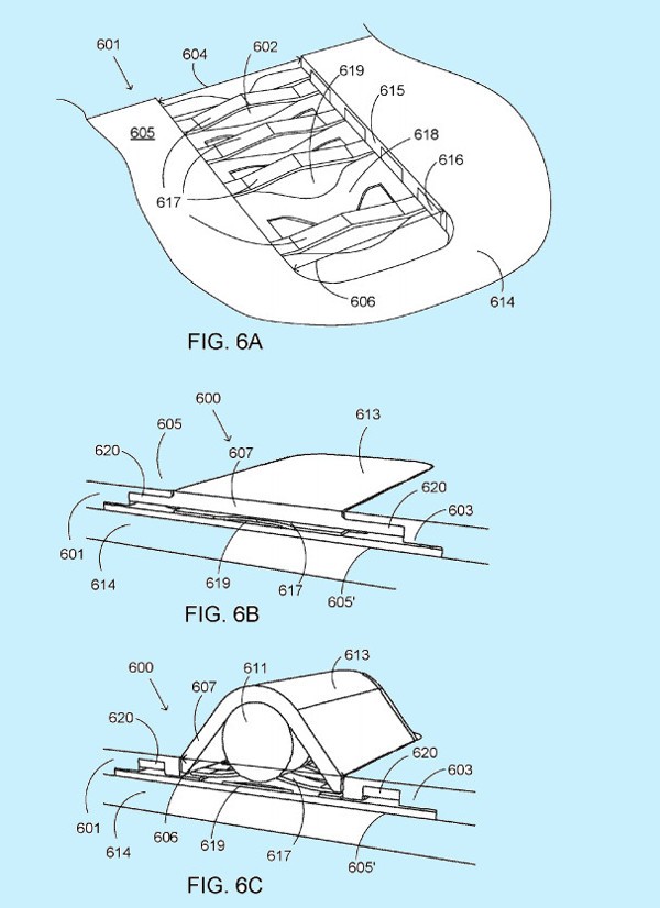 La prima prevede l’utilizzo di materiali in grado di espandersi quando l’utente inserirà il jack delle cuffie. La seconda e la terza soluzione prevedono delle incavature in grado di espandersi in una o in due direzioni, a seconda dello spessore del dispositivo.