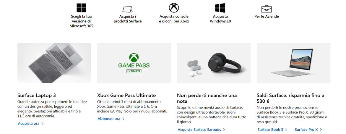 Altri prezzi interessanti riguardano poi Surface Studio 2, il potentissimo all-in-one con display touchscreen regolabile Brilliant PixelSense da 28′, adatto per i creativi, i professionisti e gli amanti del design, acquistabile con uno sconto fino al 20%. Infine, studenti, insegnanti e genitori potranno beneficiare di uno sconto dedicato fino al 10% sui nuovi Surface Laptop Go, Surface Headphones 2 e Surface Earbuds.