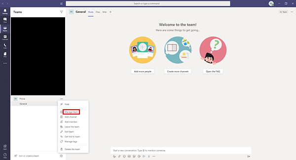 - Scegliere Manage team dal menu che viene visualizzato.