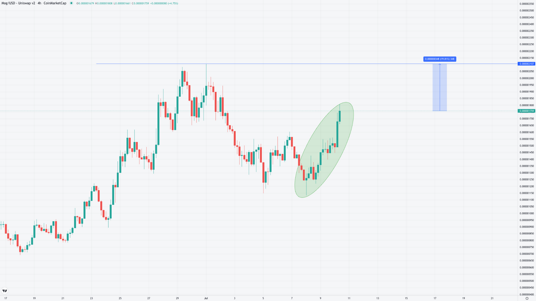 Il catalizzatore della ripresa del MOG sembra essere il pattern a doppio minimo che si è formato intorno a 0,00000115$ all’inizio della settimana.