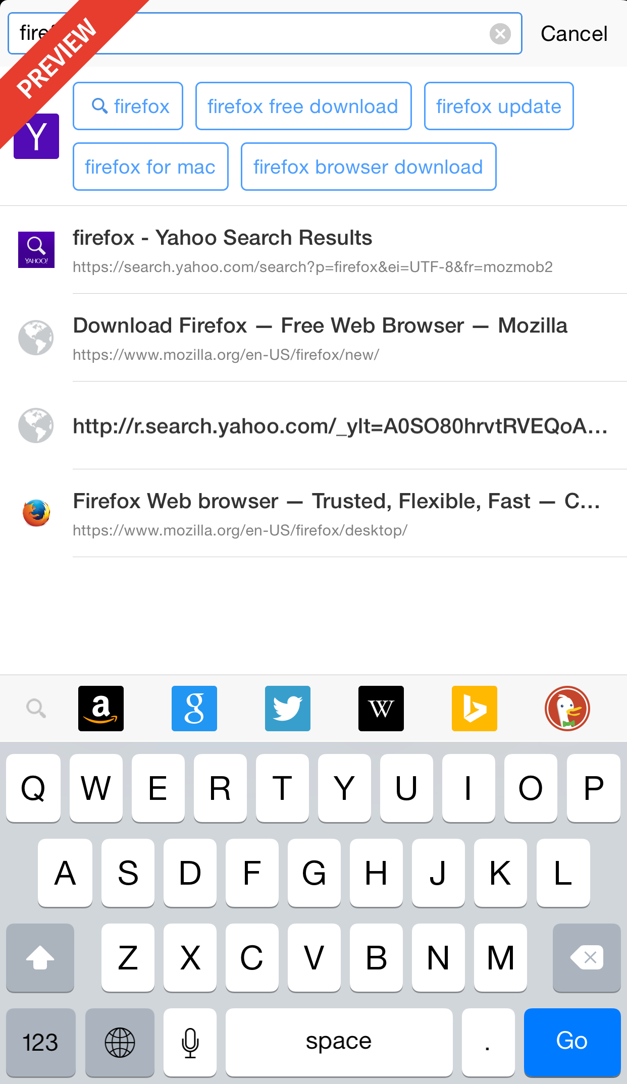 Il post pubblicato sul blog ufficiale spiega che gli utenti sono invitati a testare tre funzionalità: Intelligent Search, Firefox Accounts e Visual Tabs. Intelligent Search fornisce suggerimenti sulle ricerche e permette di scegliere il provider (Google, Bing, Yahoo, DuckDuckGo, eBay, Amazon, Wikipedia, ecc.), come avviene nella versione desktop. Firefox Accounts consente la sincronizzazione di cronologia, password e schede tra PC e dispositivi iOS. La preview include infine le Visual Tabs, ovvero le anteprime delle schede aperte.