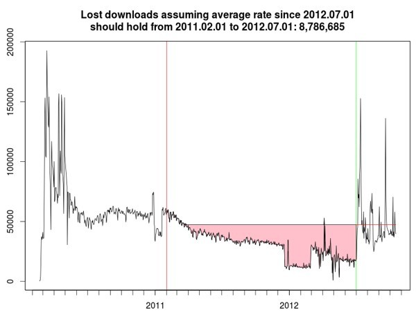 Mozilla ha voluto portare avanti i propri argomenti “misurando” il danno subito nei mesi in cui il Choice Screen è scomparso dal sistema di Redmond. La firma è quella del responsabile Harvey Anderson il quale, con tanto di grafici a supporto, ha confrontato le varie fasi in termini di download per arrivare ad una stima approssimativa del danno procurato. Il risultato indica per Mozilla un quantitativo pari a circa 6-9 milioni di download mancati, quantificazione approssimativa da cui ora Commissione Europea e Microsoft potranno trarre le rispettive deduzioni.