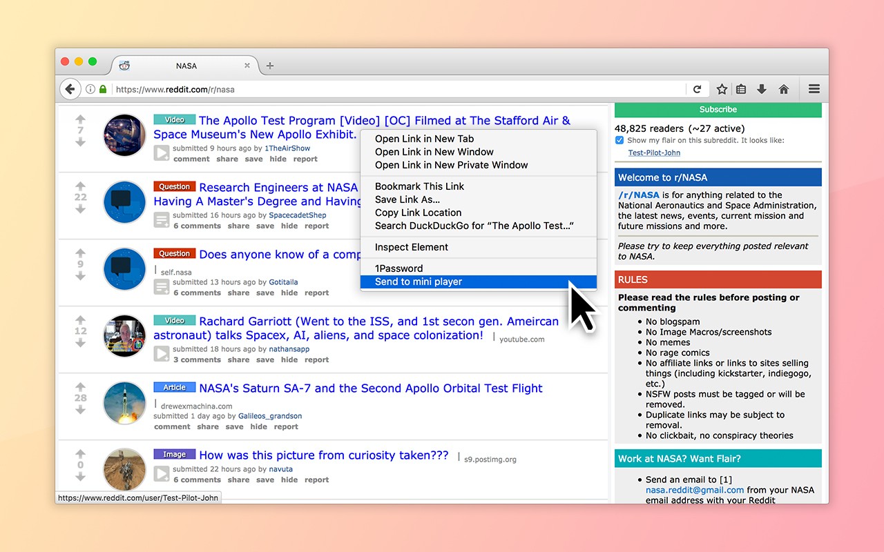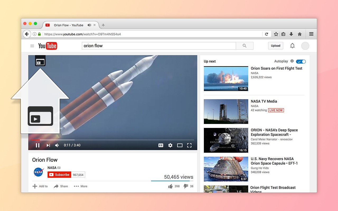 Min Video è invece la versione web del picture-in-picture. I video di YouTube e Vimeo (gli unici servizi supportati al momento) vengono riprodotti con un mini player che offre tutti i comandi necessari (play, pausa, volume), mentre si legge un articolo o si risponde all’email. La piccola finestra viene infatti sovrapposta alla pagina corrente e può essere spostata in qualsiasi posizione.
