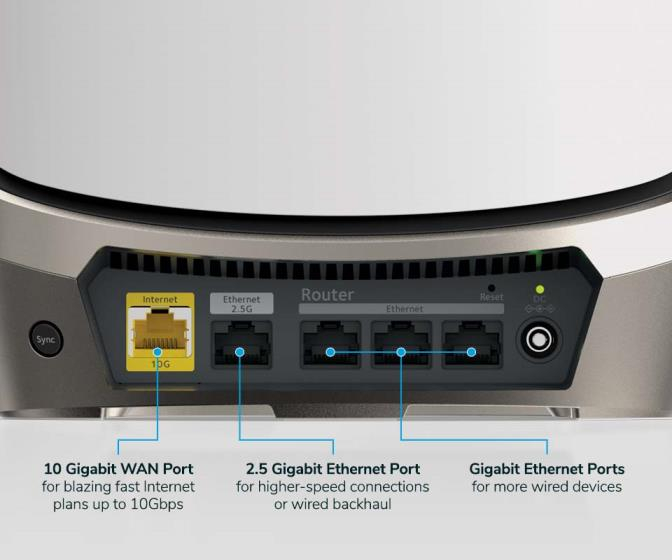 Per il resto sia il router che i satelliti hanno quattro porte LAN Gigabit ciascuno, di cui una in grado di arrivare fino a 2,5Gbps, per collegare PC, Smart TV o altri device che richiedono una connessione più stabile e veloce. Il router ha poi una porta WAN per ricevere il segnale internet dal modem con supporto fino a ben 10Gbps. Il tutto gestibile dall’ottima app Orbi che già siamo abituati ad usare.