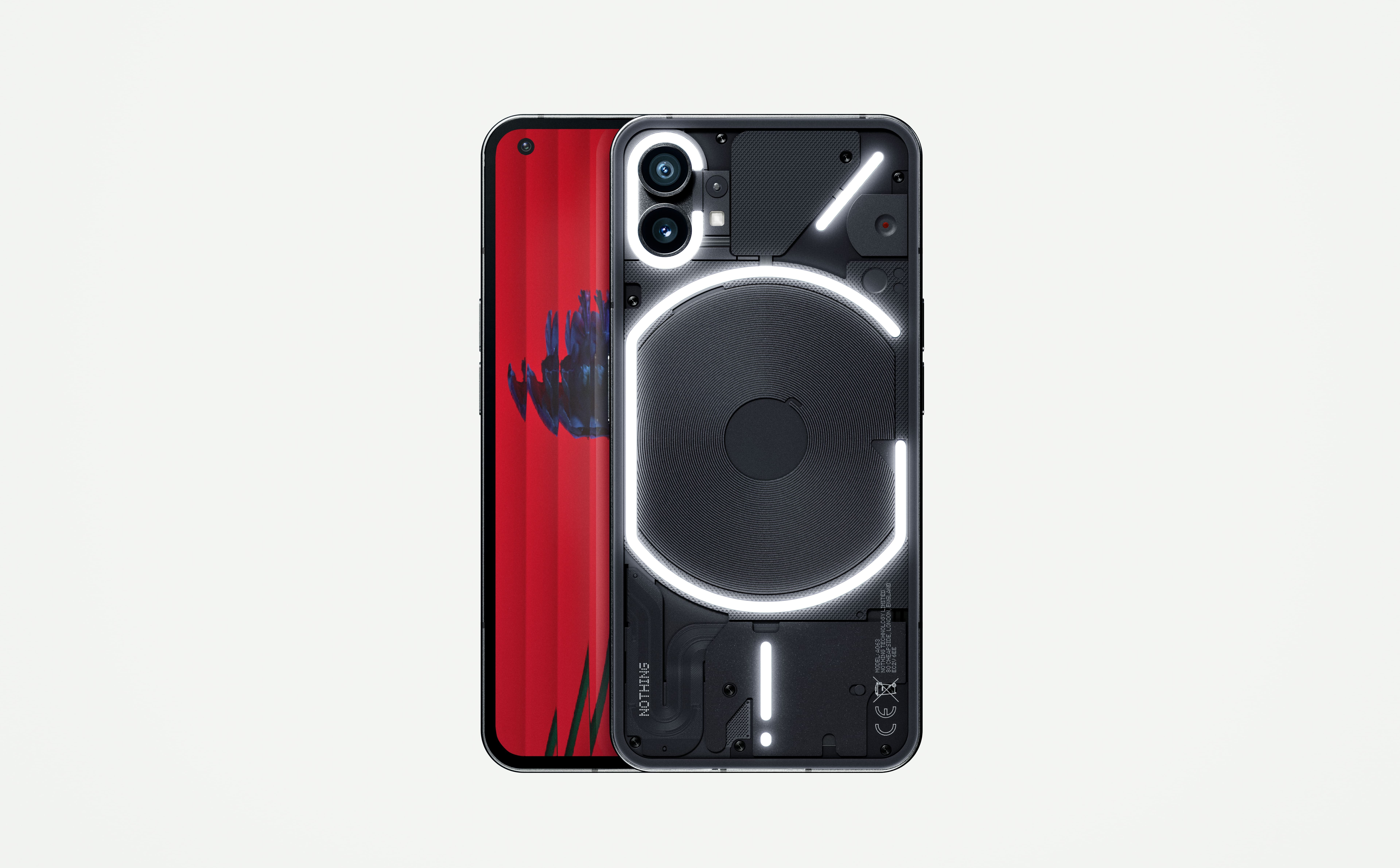 Nothing Phone (1) presenta un design che va oltre la superficie, con un retro trasparente e un design unico composto da oltre 400 componenti. Il telaio in alluminio riciclato al 100% lo rende leggero e robusto, mentre oltre il 50% dei componenti in plastica del telefono sono realizzati con materiali bio o riciclati post-consumo, una percentuale che non ha eguali nel settore. Il vetro Gorilla Glass 5 su due lati garantisce la robustezza, mentre i motori di vibrazione avanzati rendono le risposte al tatto altamente sensibili. Le cornici simmetriche e il telaio in alluminio aggiungono eleganza, leggerezza e durata.