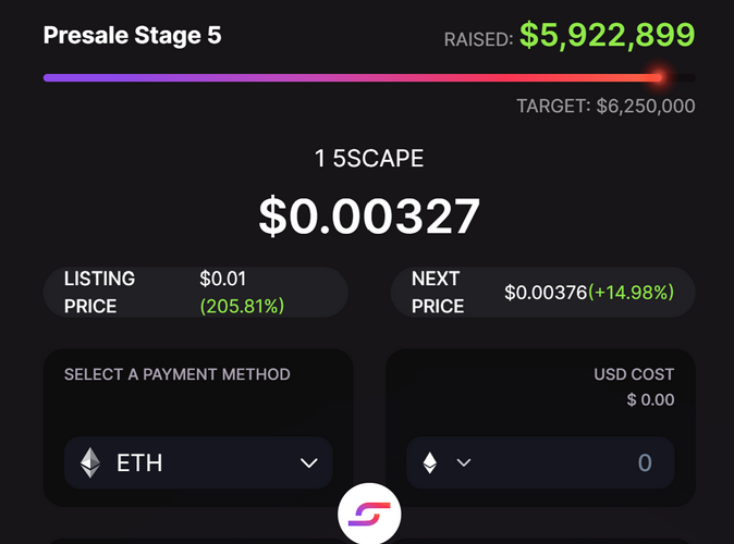 La prevendita offre l’80% della fornitura di token $5SCAPE, promuovendo la crescita del prezzo