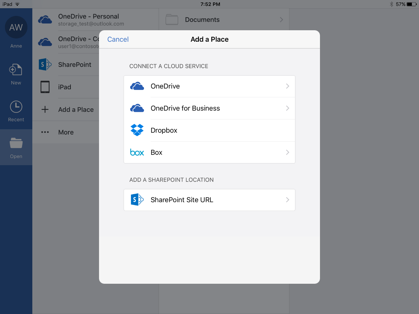 Office per iOS offre già l’integrazione con OneDrive e Dropbox. Ora gli utenti possono scegliere anche Box come servizio di storage predefinito. Ciò significa che i file Word, Excel e PowerPoint, memorizzati su Box, possono essere aperti e modificati dalle app Office. Viceversa, Box per iOS consente l’apertura, creazione e modifica dei file Office. La funzionalità verrà estesa a Citrix ShareFile, Edmodo e Egnyte nei prossimi mesi.