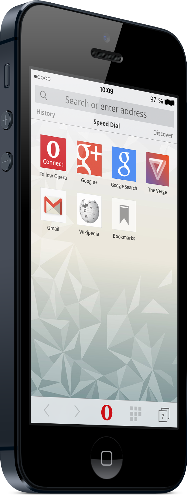 Opera Software ha combinato le barre delle ricerche e degli indirizzi, aggiunto uno slider per modificare le keyword e le URL, e integrata un’opzione che permette di cambiare il provider di ricerca (Amazon, Wikipedia, IMDB, eBay, ecc.). Il lettore di codici QR consente infine di aprire velocemente un sito web.