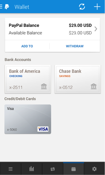 PayPal per BlackBerry 10 offre le stesse funzionalità delle versioni per iOS, Android e Windows Phone. È possibile quindi gestire il conto, controllare le transazioni, inviare/ricevere/trasferire denaro, effettuare pagamenti online e acquistare prodotti negli esercizi commerciali, utilizzando la funzionalità Check-in. Oltre alla gestione del conto digitale, l’utente può utilizzare l’app per conservare le carte fedeltà, evitando quindi di portare con sé le versioni cartacee.