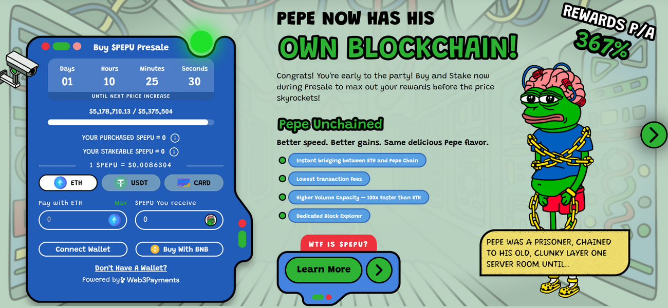 Tuttavia, la blockchain Layer-2 di Pepe Unchained significa che i possessori di PEPU possono godere di bassi costi di negoziazione, transazioni più veloci e premi di staking elevati. PEPU sta già registrando un notevole coinvolgimento nel settore della vendita al dettaglio, come risulta evidente dalla sua prevendita.