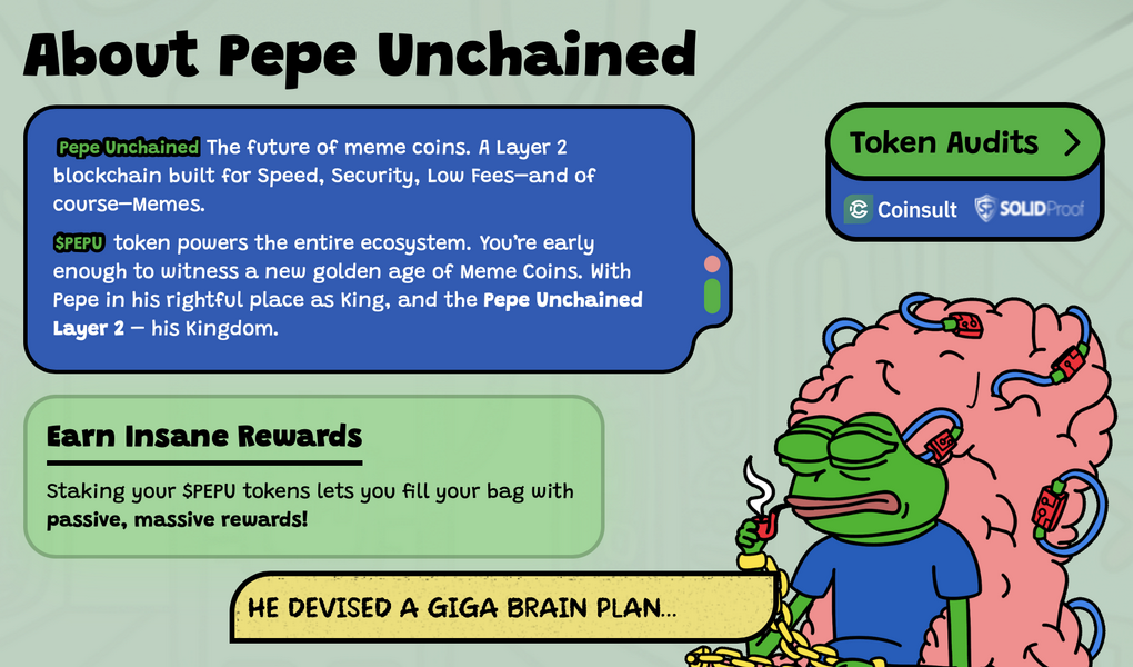 Immagina che Solana abbia beneficiato della sicurezza e della decentralizzazione di Ethereum. Questo è fondamentalmente ciò che ottieni con Pepe Unchained.