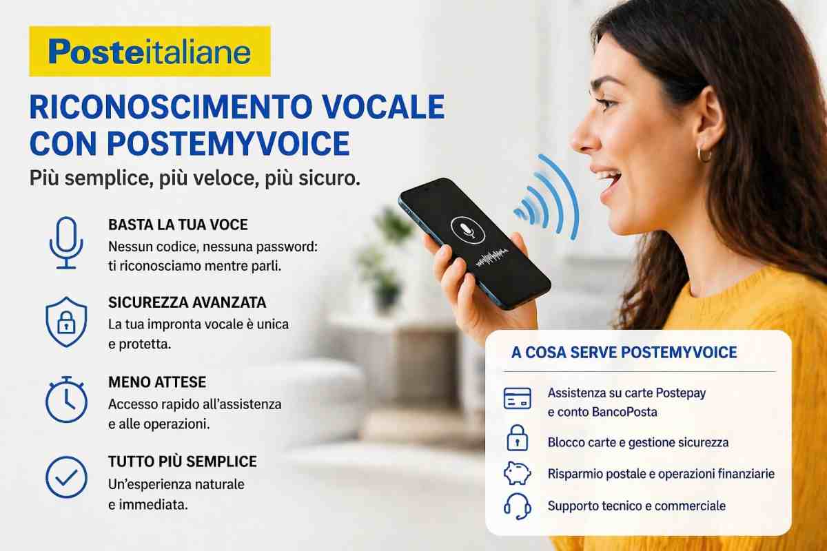 Poste Italiane ha lanciato una nuova funzione che cambia radicalmente il modo di interagire con il servizio clienti, e si chiama Postemyvoice. Si tratta di un sistema di riconoscimento vocale biometrico.