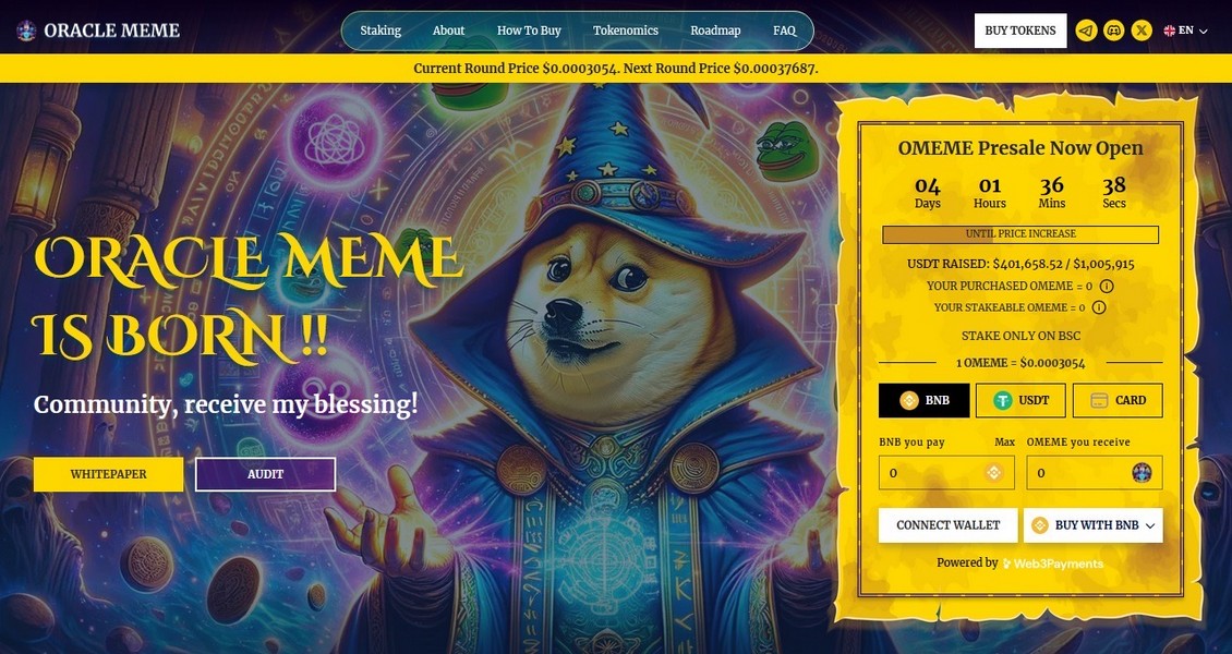 Oracle Meme (OMEME) è un nuovissimo progetto che mira a rivitalizzare il panorama delle meme coin con i suoi strumenti avanzati basati sull’intelligenza artificiale. Con l’ambizione di diffondere le meme coin a un pubblico più ampio, Oracle Meme unisce i poteri dell’intelligenza artificiale e della tecnologia blockchain, trasformando il modo in cui i meme vengono creati, condivisi e monetizzati.