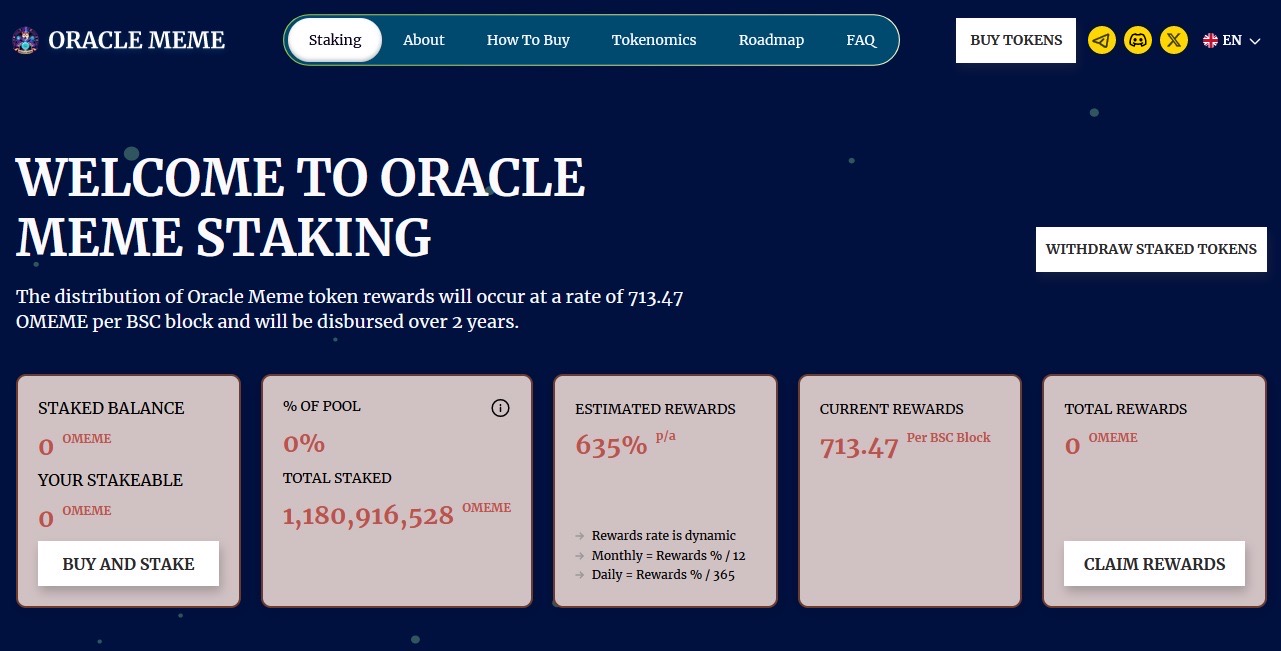 Durante la navigazione tra questi prodotti, gli utenti potranno anche assaporare vantaggi esclusivi per detenere la criptovaluta nativa del progetto, $OMEME. Innanzitutto, i titolari hanno la possibilità di ricevere criptovalute gratuite dai token lanciati sul suo launchpad. Oltre a ciò, Oracle Meme ha una funzionalità di staking che vedrà i detentori guadagnare un reddito passivo per contribuire alla stabilità del suo ecosistema.