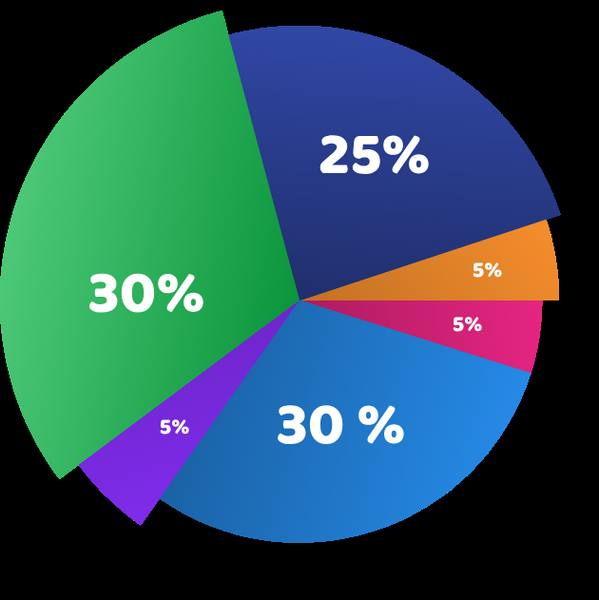 - 30% per la vendita iniziale di token