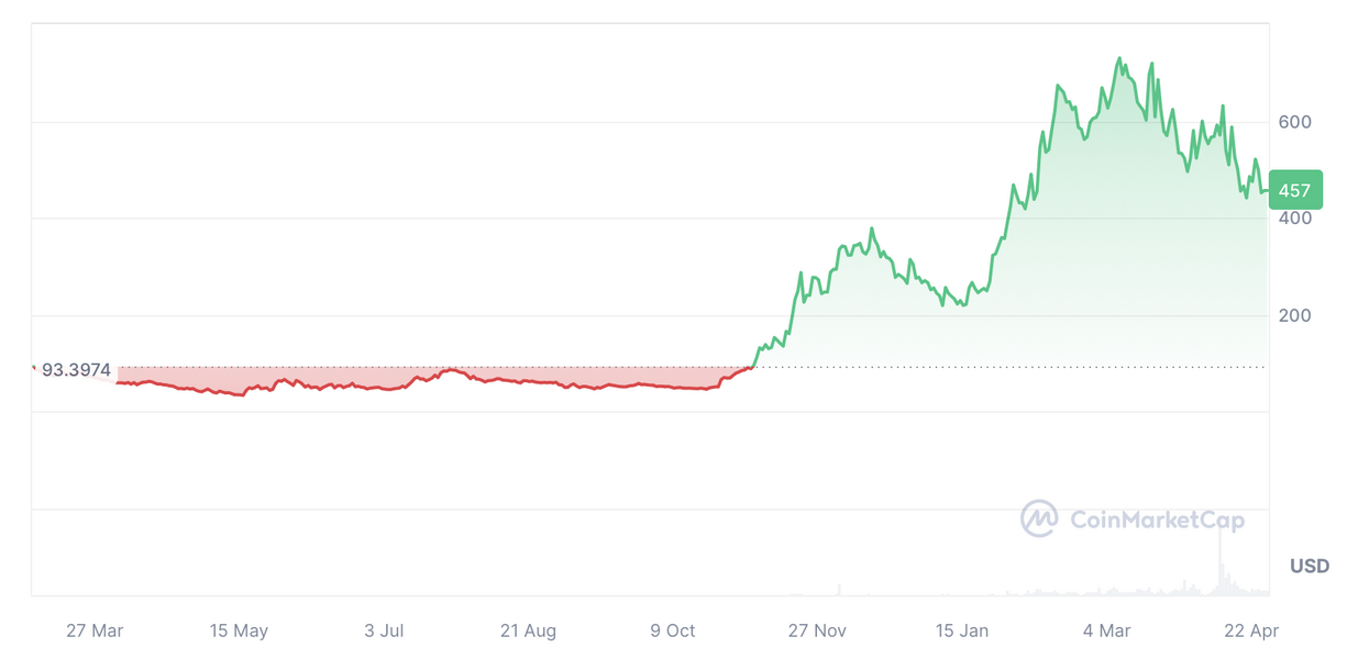 È già un progetto consolidato, negoziato a 452 dollari con una capitalizzazione di mercato di 3 miliardi di dollari. Il suo prezzo è aumentato del 5% questa settimana, è sceso del 21% questo mese e dell’827% quest’anno.