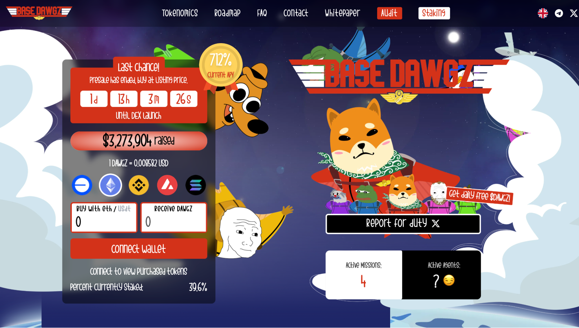 Al momento è l’ultima possibilità per acquistare Base Dawgz a un prezzo fisso. Il token verrà quotato sugli exchange tra un giorno!