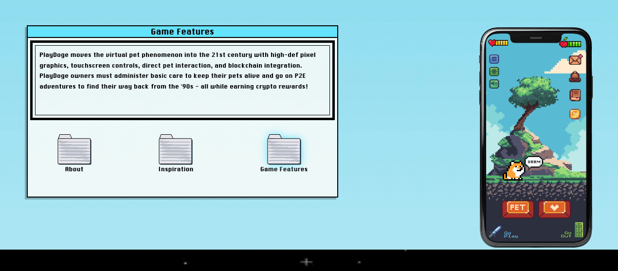 La premessa di base è che gli utenti diventino i “genitori” di un Doge con pixel a 8 bit. Gli utenti devono dargli da mangiare, giocare con lui a minigiochi e persino affezionarsi, proprio come se fosse un vero animale domestico.
