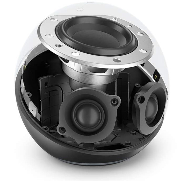 E ci sorprende il cambio di rotta sul fronte design: dopo anni di forme cilindriche per la prima volta troviamo uno smart speaker sferico, che magari può far storcere il naso a qualcuno ma che senza dubbio può donare un tocco di modernità nell’arredamento della stanza in cui decidiamo di posizionarlo.