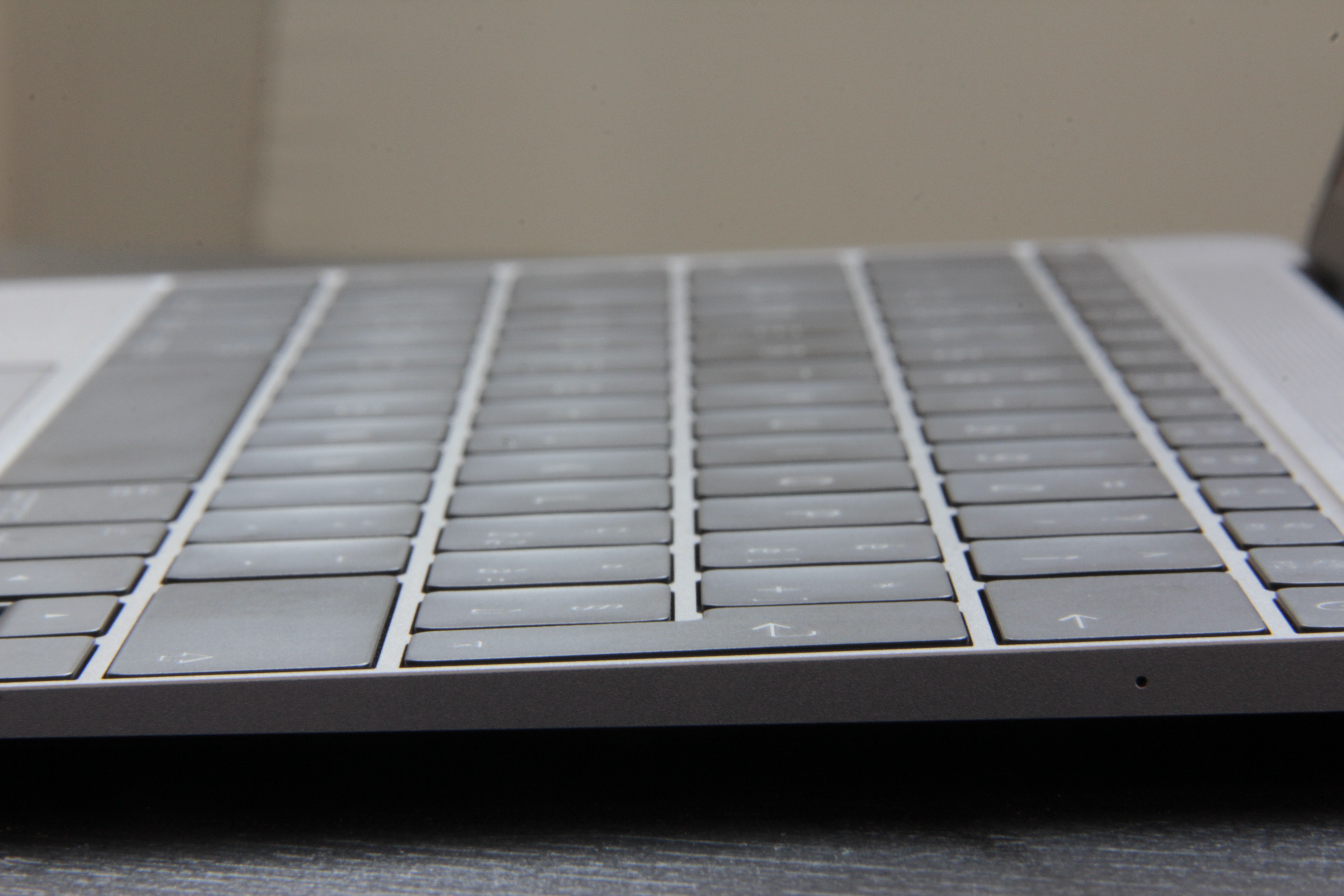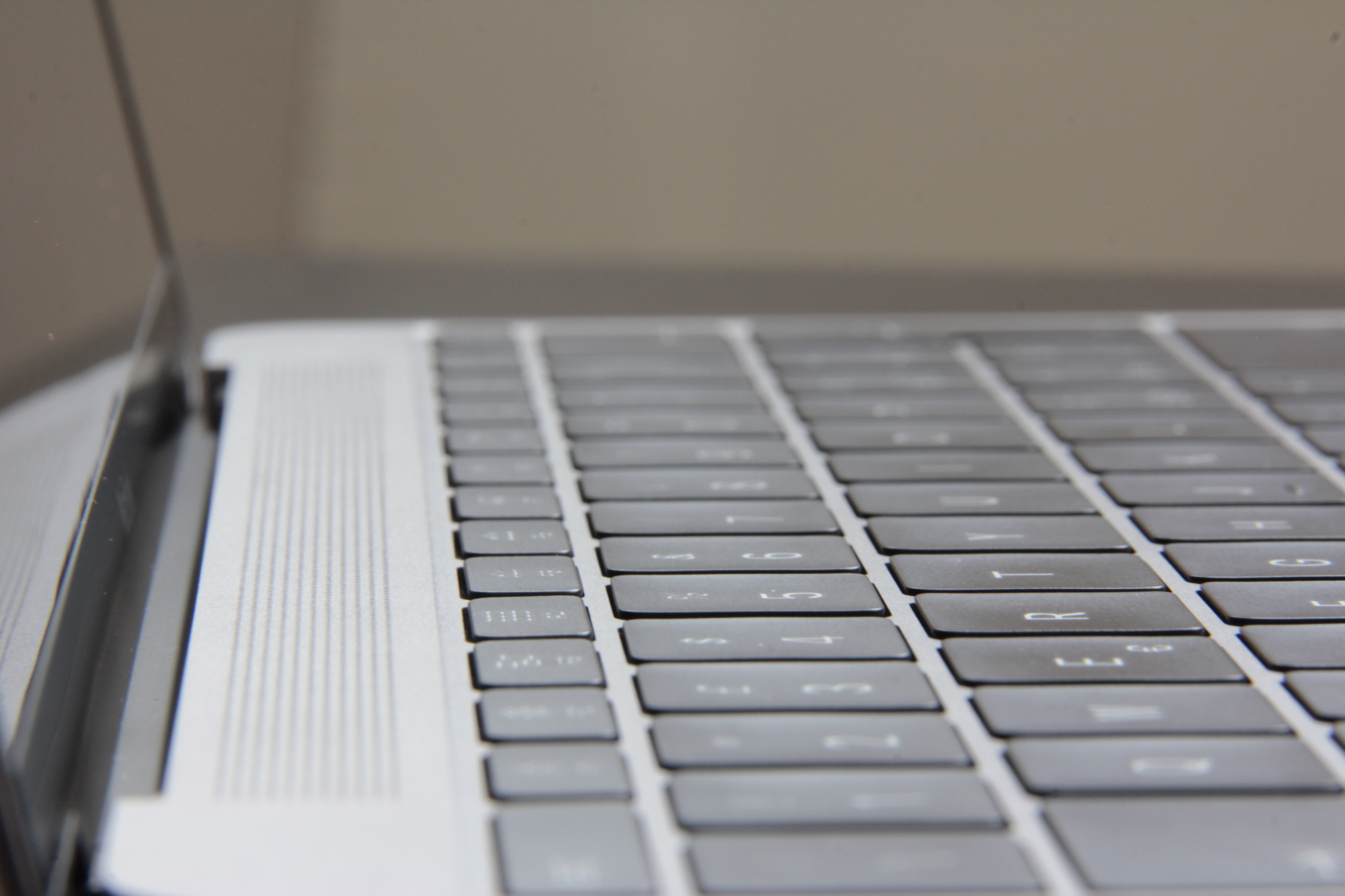 Ogni scelta estetica è controllata, ponderata: dagli speaker non più posizionati all’interno della tastiera ma nella parte superiore; all’ampio trackpad con Force Touch, passando per il display quasi edge-to-edge, che lascia senza fiato una volta alzato il coperchio. È essenziale, compatto. Ogni altro portatile sembra inefficiente, ingombrante e brutto al confronto. Ma non più pulito: tutta la superficie, e più in particolare il display, non sembra essere oleofobico, catturando impronte e polvere, e l’effetto non è affatto gradevole. È il primo portatile di casa Apple ad essere all-metal, disponibile in tre colori: grigio siderale, argento e oro.