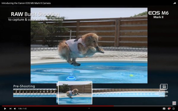 Un aspetto che viene spesso menzionato nei video di presentazione della M6 Mark II è la sua capacità di scattare con burst rate elevati: offre infatti un frame rate continuo di 14 fps.