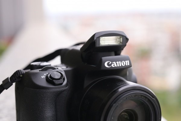 Il flash può essere estratto manualmente quando necessario (attivazione forzata) ma non è stata previsto un contatto hot show presente invece sulla precedente PowerShot SX60 HS.