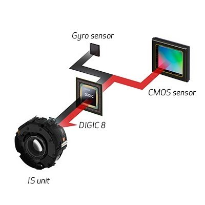 Il sistema, che vanta un’efficacia dichiarata di 5 f/stop, analizza automaticamente il movimento della fotocamera e applica il miglior metodo di correzione delle vibrazioni in base alle situazioni di ripresa, consentendo di concentrarsi sull’inquadratura e catturare lo scatto. Per le still picture, il sistema seleziona la modalità Normale (Fermo immagine) IS, Panning IS, Macro (Ibrido) IS e Treppiedi. Quando si riprende un video, la selezione avviene tra le modalità IS dinamico, IS attivato, Macro (ibrida) e Treppiede IS. Le nuove icone segnano chiaramente la modalità di stabilizzazione dell’immagine, sia per le foto che per i video.