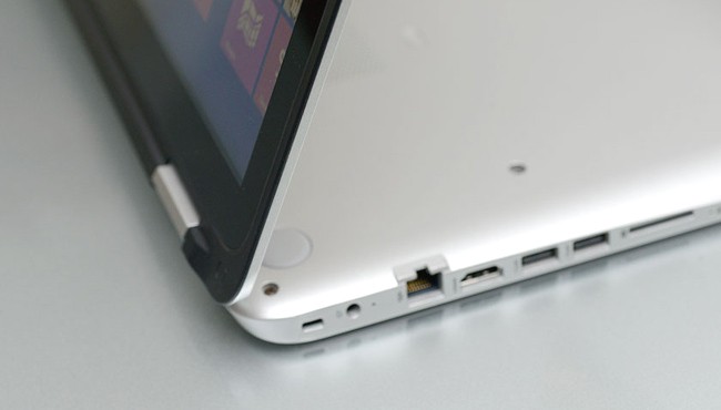 L’elemento chiave del design è ovviamente lo schermo è capace di ruotare completamente fino a chiudersi sul retro del dispositivo grazie a un apposito snodo, offrendo una configurazione da tablet. Sono possibili anche posizionamenti intermedi, in quanto lo snodo offre abbastanza resistenza da risultare fermo più o meno in tutti gli angoli.