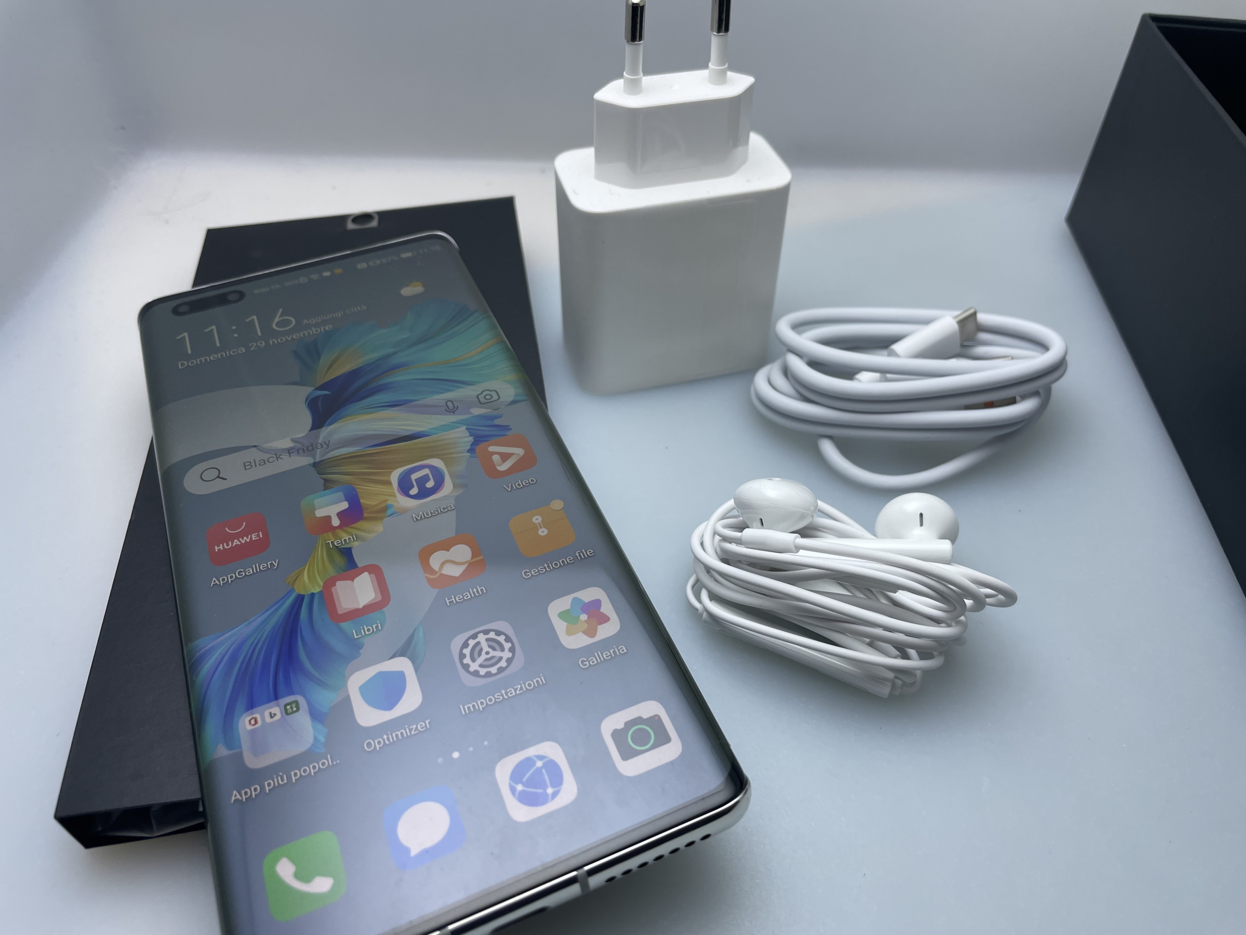 Impostando la risoluzione dello schermo al massimo e utilizzando il 5G potreste arrivare al limite fino a sera, ma la ricerca super veloce a 66 W, possibile utilizzando il caricabatterie HUAWEI SuperCharge 66 W e il cavo dedicato – entrambi inclusi nella confezione – vi permettono di guardare preziosa energia per arrivare a fine giornata, se necessario in pochi minuti. Non siamo stati in grado di testare la ricarica wireless veloce a 50W, che richiede l’utilizzo del HUAWEI SuperCharge Wireless Charger Stand, venduto separatamente.