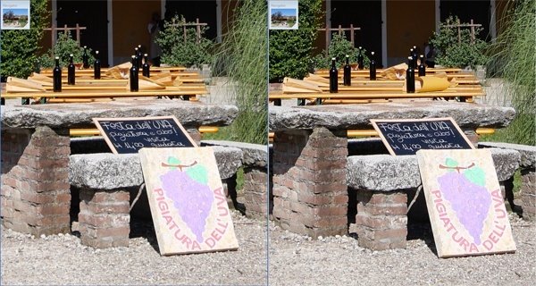 Risoluzione intelligente: a sinistra OFF, a destra sul valore più alto. Si nota effettivamente un incremento artificiale della risoluzione mediante uno speciale algoritmo operato dal processore d’immagine