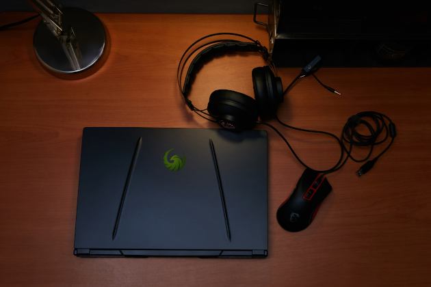 Il design del laptop è molto gradevole, con una scocca in policarbonato resistente nel corpo principale ed in alluminio nella parte mobile, con il logo MSI che si illumina in un bel verde quando la macchina è accesa. Le dimensioni sono di 357,7x248x27,5mm, quindi decisamente contenute per un PC gaming, ed il peso di 2,3Kg.