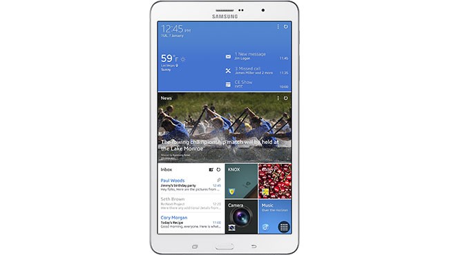 Samsung Galaxy TabPRO 8.4 è un tablet equipaggiato al lancio con sistema operativo Android 4.4 KitKat e interfaccia personalizzata Magazine UX. La scheda tecnica vede la presenza di un display da 8,4 pollici con risoluzione 2560×1600 pixel, processore quad core Qualcomm Snapdragon 800 da 2,3 GHz, 2 GB di RAM, memoria interna da 16 o 32 GB, slot per la lettura di schede microSD fino a 64 GB, fotocamera da 8 megapixel con flash LED sul retro della scocca, secondo obiettivo frontale da 2 megapixel, modulo WiFi, GPS, Bluetooth 4.0, slot micro-USB 2.0 e batteria da 4.800 mAh. Le dimensioni sono pari a 128,5x219x7,2 mm, mentre il peso è di 331 grammi.
