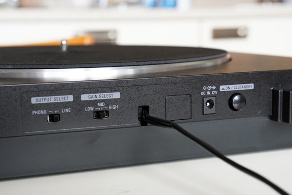 Sul retro, invece, si trova il selettore per l’uscita phono o linea (il giradischi ha lo stadio phono RIAA integrato, quindi può essere collegato all’ingresso linea di un preamplificatore o al suo ingresso phono, se presente), il selettore del guadagno d’uscita fra -4, 0 e +6 dB (LOW, MID, HIGH), l’ingresso per l’alimentatore separato e il tasto di accensione.