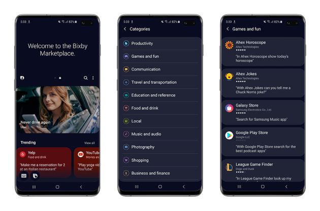 A partire dalla versione 2.0 di Bixby, Samsung consente agli sviluppatori di terze parti di creare le capsule (equivalenti alle skill di Alexa), utilizzando il Bixby Developer Studio disponibile sul sito dedicato. Gli utenti possono scaricare le capsule dallo store e personalizzare l’assistente in base alle loro necessità. Per accedere al Bixby Marketplace è sufficiente avviare Bixby ed effettuare uno swipe verso destra dalla schermata principale.