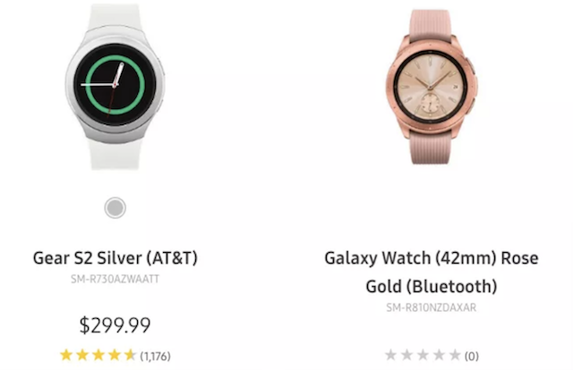La scorsa settimana era stato scoperto un documento sul sito della FCC con riferimenti ai modelli SM-R800 e SM-R810. Il primo è il Galaxy Watch con schermo da 1,3 pollici e diametro di 46 millimetri, mentre il secondo è quello apparso sul sito Samsung, ovvero la versione dello smartwatch con schermo da 1,2 pollici e diametro di 42 millimetri. Considerati le dimensioni ridotte e il colore scelto (oro rosa), questa variante sembra essere indirizzata all’utenza femminile. Il produttore coreano annuncerà inoltre un modello LTE (SM-R815) che potrà essere utilizzato in maniera indipendente dallo smartphone.
